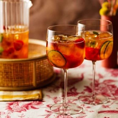Fill a jug with ice and pour over the Pimm’s and lemonade. Give it a good stir then add the mint, cucumber, and fruit.